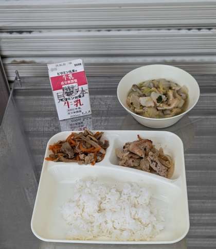 鶏肉の梅風味焼き うすくず汁 きんぴらごぼう ごはん 牛乳
