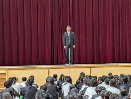 また、後期生徒会役員による個性あふれる自己紹介もありました。それぞれの持ち味がしっかり発揮できるように頑張ってほしいと思います。
