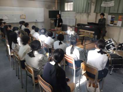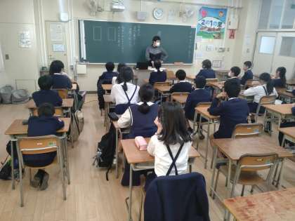 クラスごとに分かれて「国語・社会・数学・理科・英語・音楽・美術」のうちの1つの授業を受けました。
