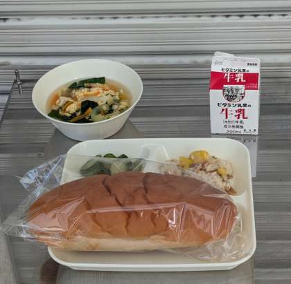 中華おこわ 卵スープ きゅうりのピリ辛あえ 黒糖パン 牛乳