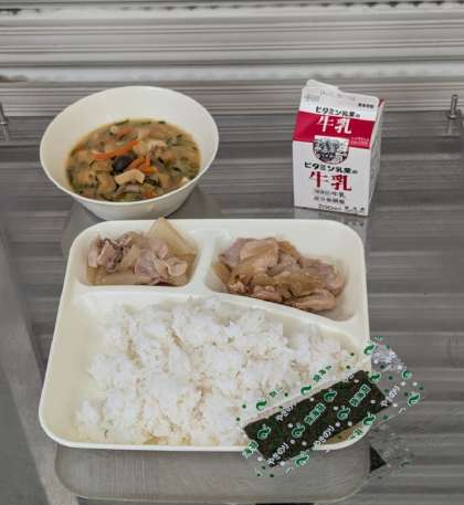 鶏肉の甘辛焼き みそ汁 だいこんの煮もの 焼きのり ごはん 牛乳