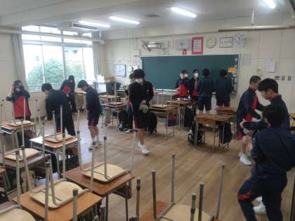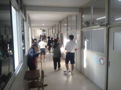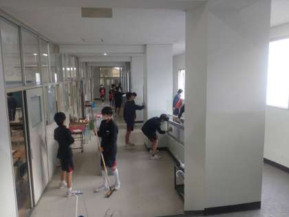 今日は、ロッカーの整理や机・椅子の足拭き、ワックスがけなど、平日の掃除の延長ではなく、生徒たちが、それぞれ積極的に汚れを見つけ、隅々まで丁寧に清掃活動に取り組みました。
