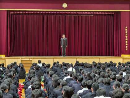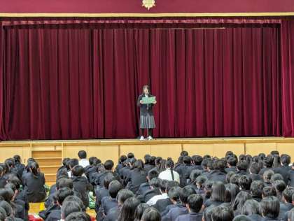 9日(月)の全校集会では、校長先生から先週の芸術鑑賞についてのお話がありました。人権週間に差別や人権についてあらためて考える機会が持ててよかったですね。