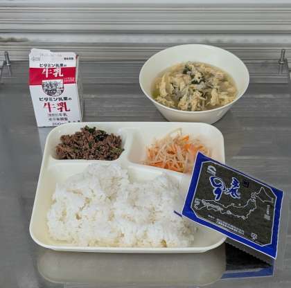 キンパ 焼きのり 卵の中華スープ ごはん 牛乳