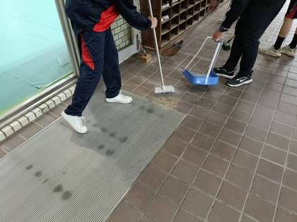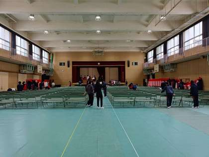 体育館にシートを敷き、椅子を並べて式場を整えるとともに、校内の清掃や明日新入生に配付する教科書の準備など、一生懸命取り組んでくれました。