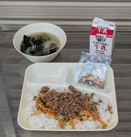 ビビンバ トック いもけんぴフィッシュ ごはん 牛乳