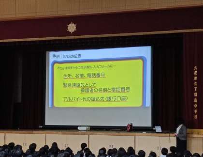 本日、6時間目は梅田少年サポートセンターの方を講師にお招きして、情報モラル学習を行いました。SNSの使い方、画像の扱い方など、今日学んだことをぜひお家でも話題にしてください。