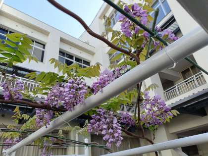 福島区の花『のだふじ』が中庭にきれいに咲いています。