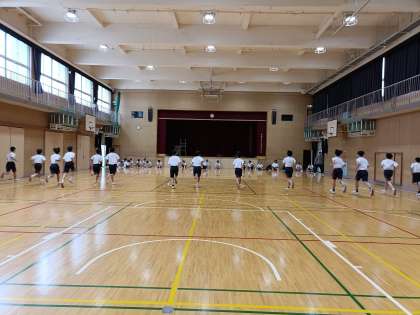 男子の20mシャトルランは20m間隔にひかれた線を音源に合わせて行き来することが何回できるかという持久力を測定するものです。みんな自分の限界への挑戦を頑張っていました。