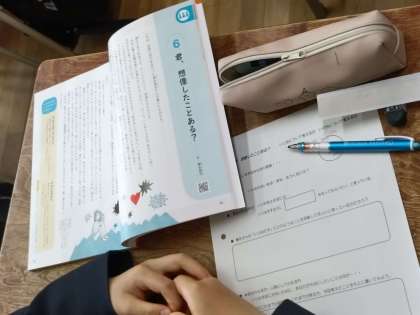 2年生も「いじめについて考える日」に道徳教材を活用して、いじめる人が思っていること、いじめられる人が思っていることの違いを考え、「いじめ」について考えていました。