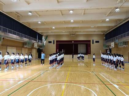 また、体育館では1−4・5が集団行動の練習をしていました。みるみるできるようになってきました。