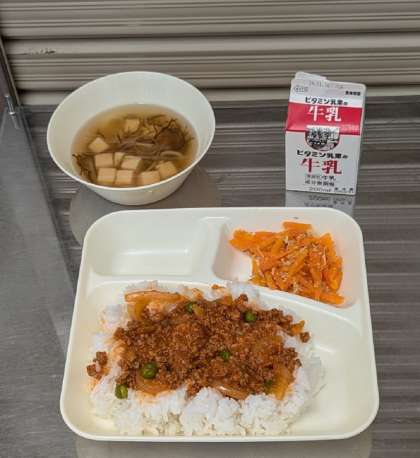 タコライス とうふともずくのとろり汁 にんじんしりしり風 ごはん 牛乳