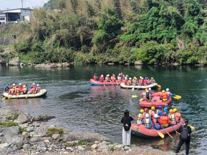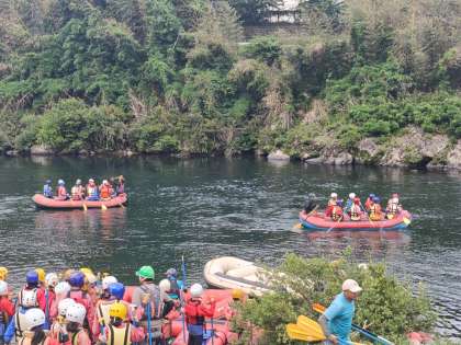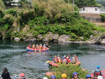 ラフティングのスタートのようすです。最後のクラスも出発しました。