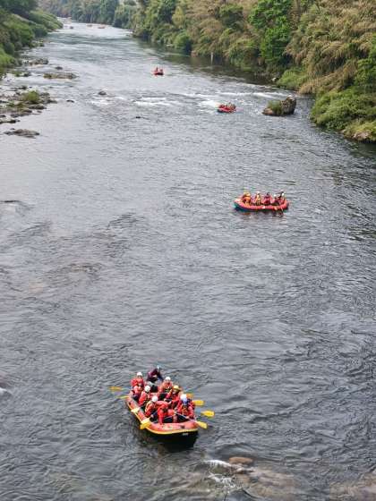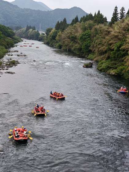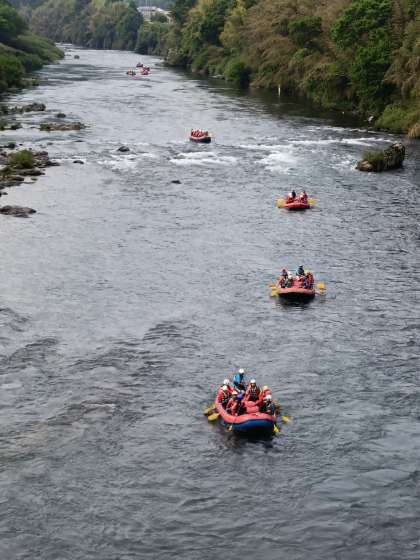 ラフティングのゴール前のようすです。それぞれのクラスごとに帰ってきました。