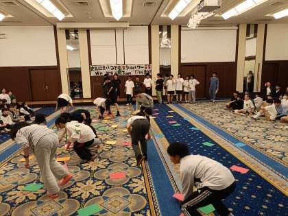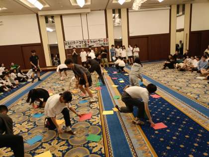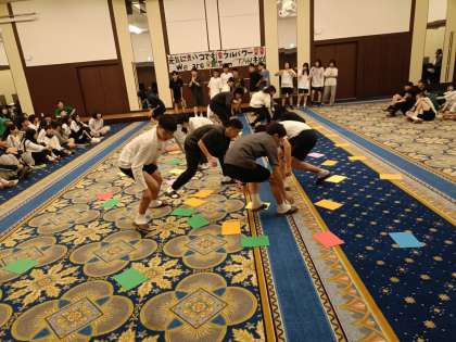 つぎの夜レクは、クラス対抗色画用紙ひっくり返しゲーム。