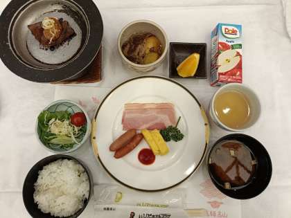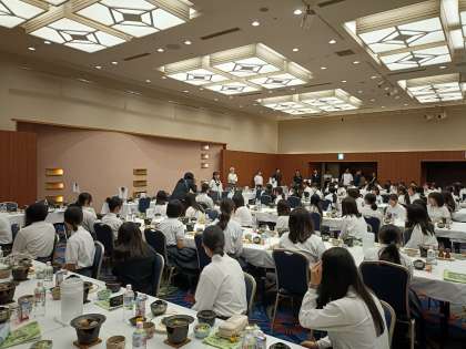 司会の挨拶のあと、いただきます。まだ、ねむたそうな表情の生徒がいますね。