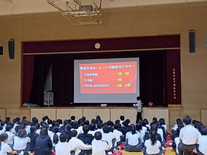 全校集会後、1年生はそのまま体育館に残って学年集会をおこないました。