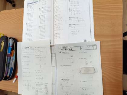 本日2時間目1-2は数学の授業でした。前回の復習 (-6)? と -6? の違いを確認し、応用問題に進みました。