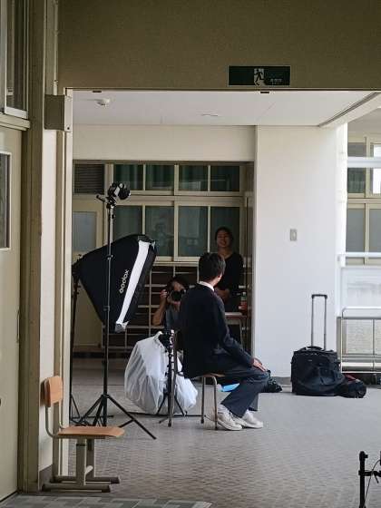 3年生は卒業アルバム用の個人写真を撮影しています。