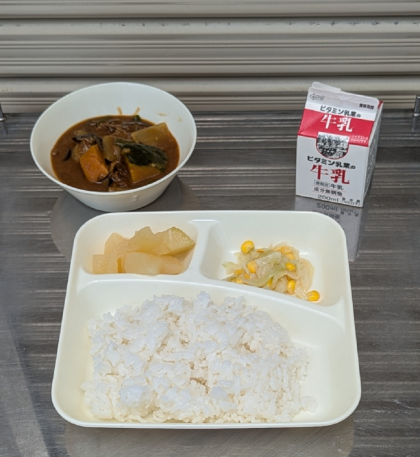 夏野菜のカレーライス サワーソテー 洋なし(カット缶) 牛乳