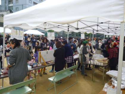 中学校は、フライドポテトとイライラ棒とコイン落としを出しました。