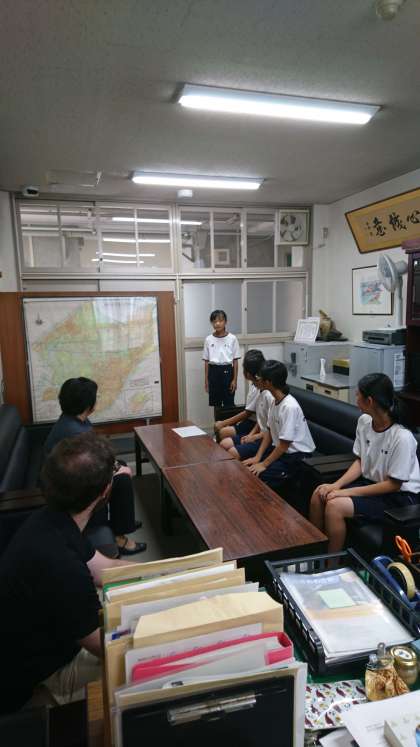 9月8日(土)に行われる英語暗唱大会に向けて、1年生が校長室にて練習を行いました。校長先生、Austin先生、クラブの友だちが見ている中、緊張していましたが、日頃の練習の成果を出していました!