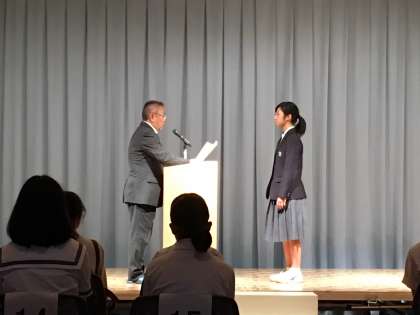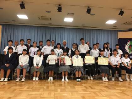 9月29日(土)に、大阪市立咲くやこの花中学校にて行われた「大阪市長杯英語暗唱大会」に3年生が出場しました。20名の参加者がいる中、「大阪国際交流センター賞」を見事受賞しました。