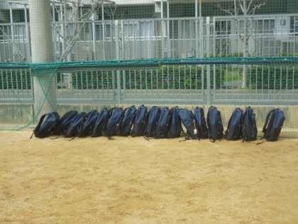 タオルや水筒の入ったカバンもきちんと並べられていて、とても気持ちの良い球技大会となりました。