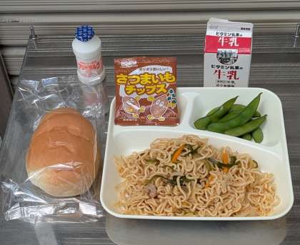 焼きそば えだまめ おさつチップス 発酵乳 ミニコッペパン 牛乳