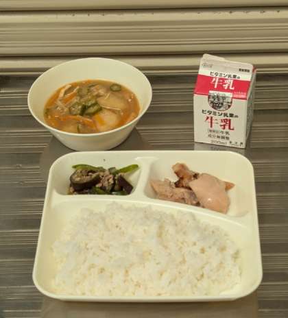 鶏肉のてり焼き とうがんのみそ汁 なすのそぼろいため ごはん 牛乳