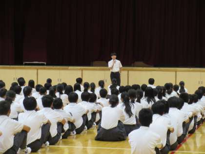 先週末から来られている教育実習の先生から、自分の中学校時代と比べてのお話がありました。少し緊張されていましたが、わかりやすかったですね。