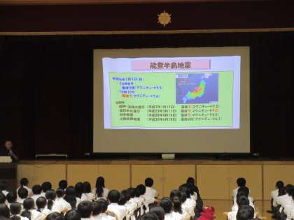 消防署や区役所の方に来校していただき、令和6年1月に発生した能登半島地震について講話をしていただきました。