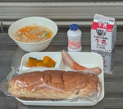ウインナーのケチャップソース スープ 焼きかぼちゃ 発酵乳