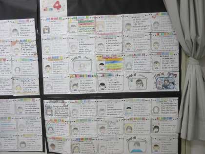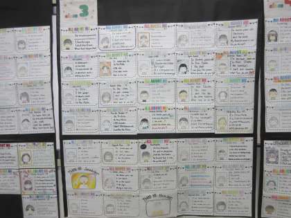 1年英語 ALL ABOUT ME が多目的教室に掲示されています。