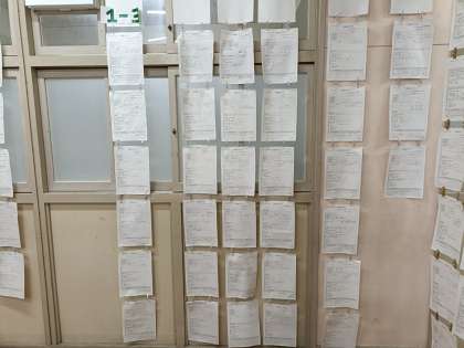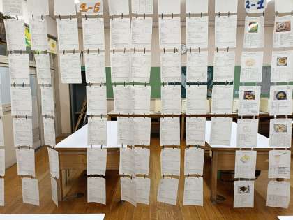 1年家庭科 洗濯レポートが被服室に掲示されています。