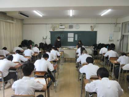本日、3年生は大阪市英語力調査(読む・聞く・書く・話すの4技能の試験)を行っています。