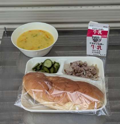 豚肉のガーリック焼き コーンスープ きゅうりのバジル風味サラダ