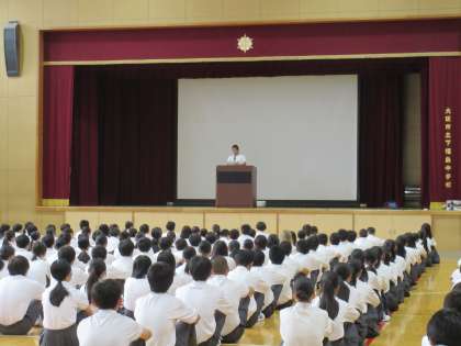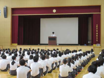 今朝の2年生学年集会は、アカデミックデイに発表された中学生の主張に選考まで残ったものの発表がありました。