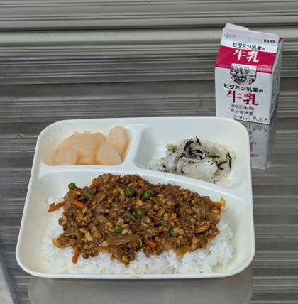 大豆入りキーマカレーライス キャベツのひじきドレッシング