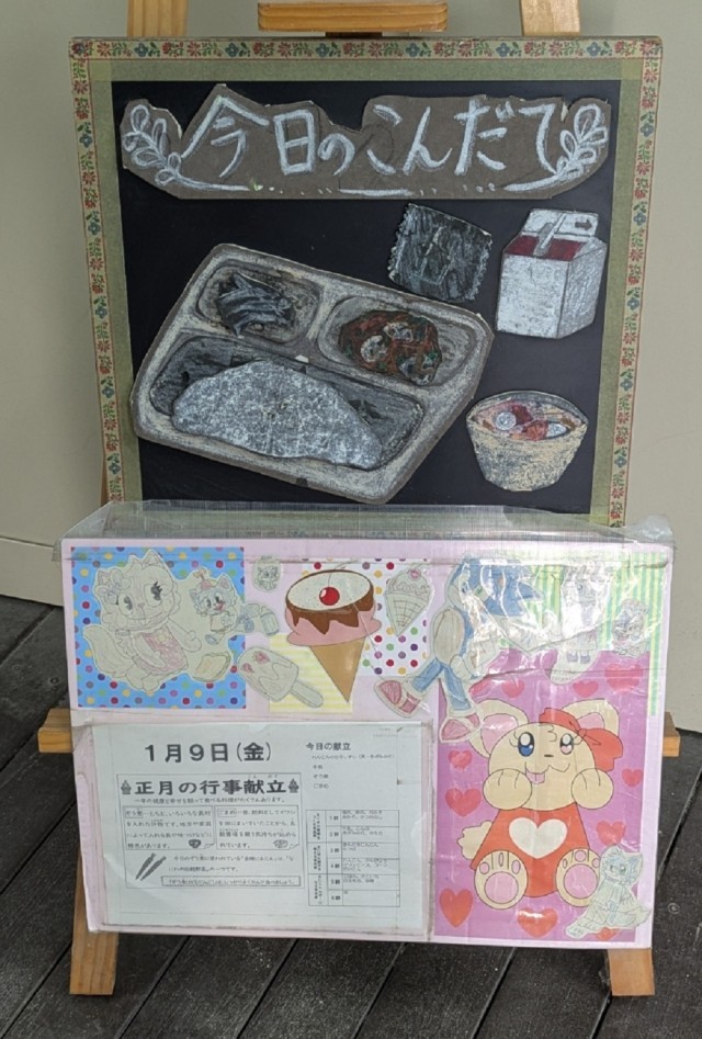 今日の給食は正月の行事献立でした。今日もおいしくいただきました。ごちそうさまでした。