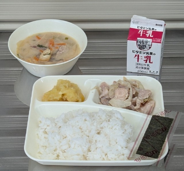 鶏肉の塩こうじ焼き かす汁 くりきんとん 焼きのり ごはん 牛乳