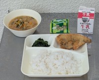あじのレモンマリネ てぼ豆のスープ煮 白桃(カット缶) 黒糖パン 牛乳