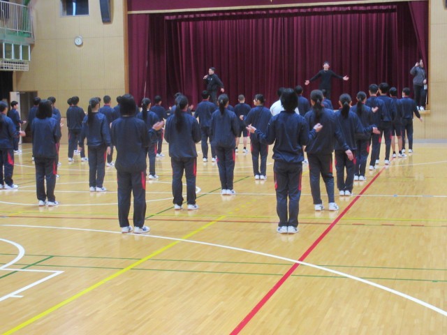 本日2時間目(2-1/2)・3時間目(2-3・4)・4(2-5・6)時間目に2年生はダンス教室を行いました。見本・説明・実践そして演技、楽しい時間でした。