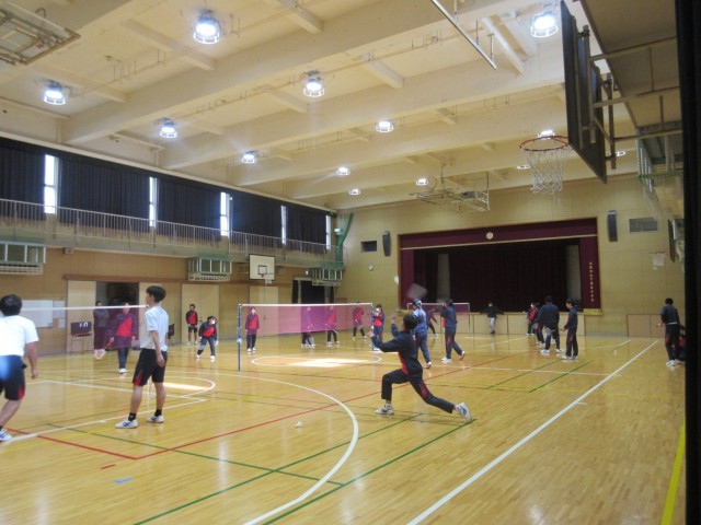 5組はグラウンドでサッカー、6組は体育館でバドミントンをしました。