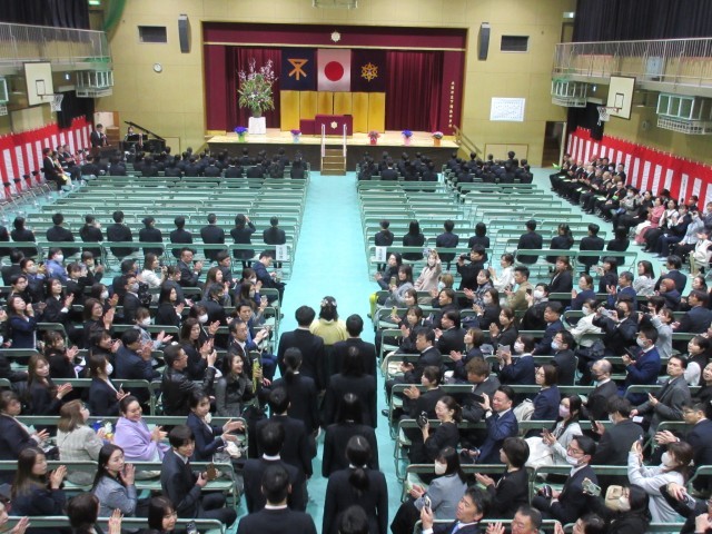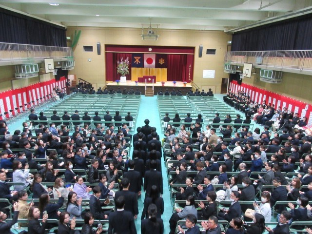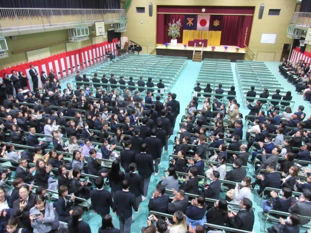 卒業生入場 1組が入場します、2組が入場します、3組が入場します・・・と続きます。