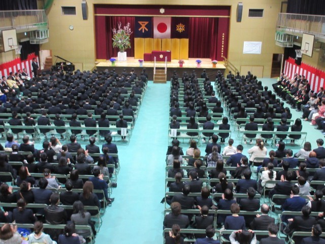 閉式のことばがあり、大阪市立下福島中学校第77回卒業証書授与式が終わりました。