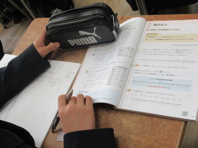 前時間に学んだ、正の数・負の数の復習と数の大小について学びました。