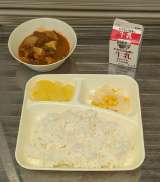 ハヤシライス キャベツとコーンのサラダ りんご(カット缶) ごはん 牛乳 今...