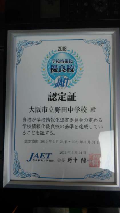 学校情報化優良校に認定されました!