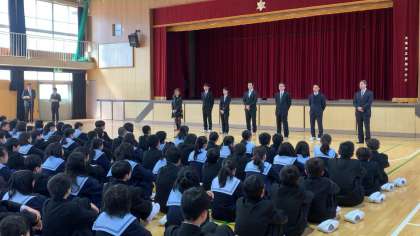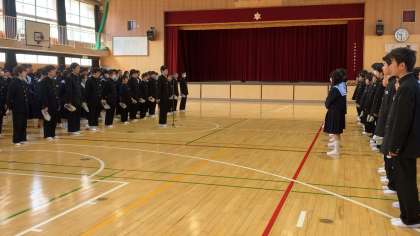 最後に生徒会のメンバーから、今年度の野田中学校の学校目標が発表されました。学校目標は、"新たな挑戦、広がる無限の可能性”に決まりました‼
